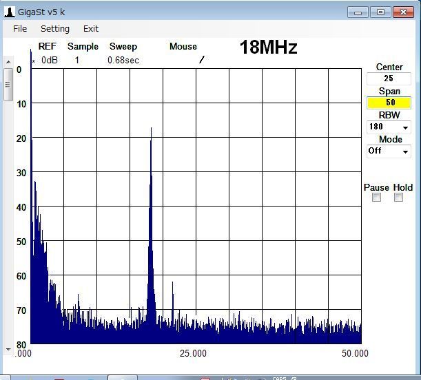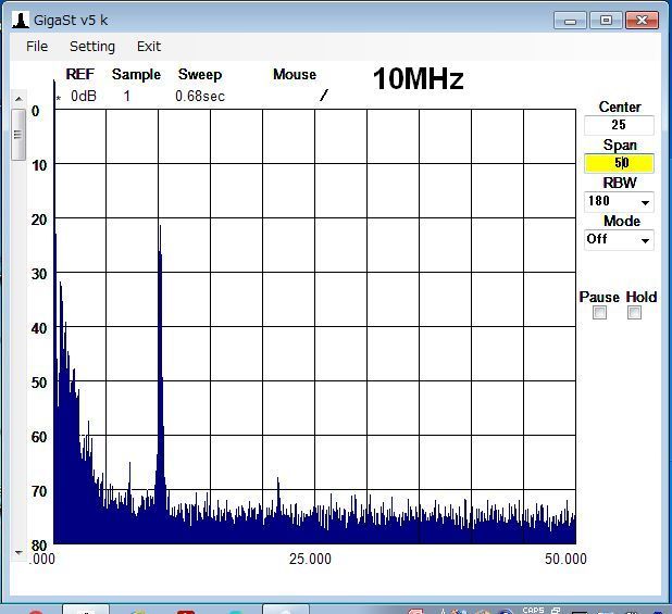 各バンドの出力スペクトラムは、下図のとおり。 65〜60dBATTを入れて、GigaST5で観察。