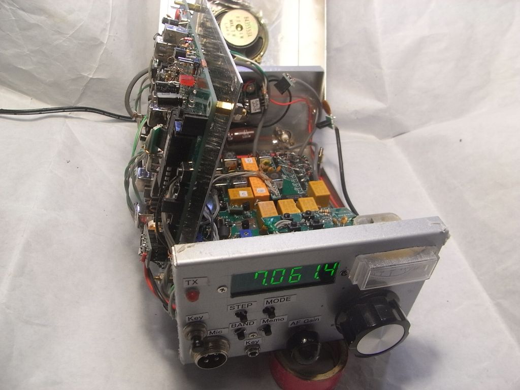 親基板(K21)+TX基板(OP19)の 10Wトランシーバ外観。 右写真;(K21)KP6mni基板100x130mm。この基板の下側に(OP19)TXmini10W