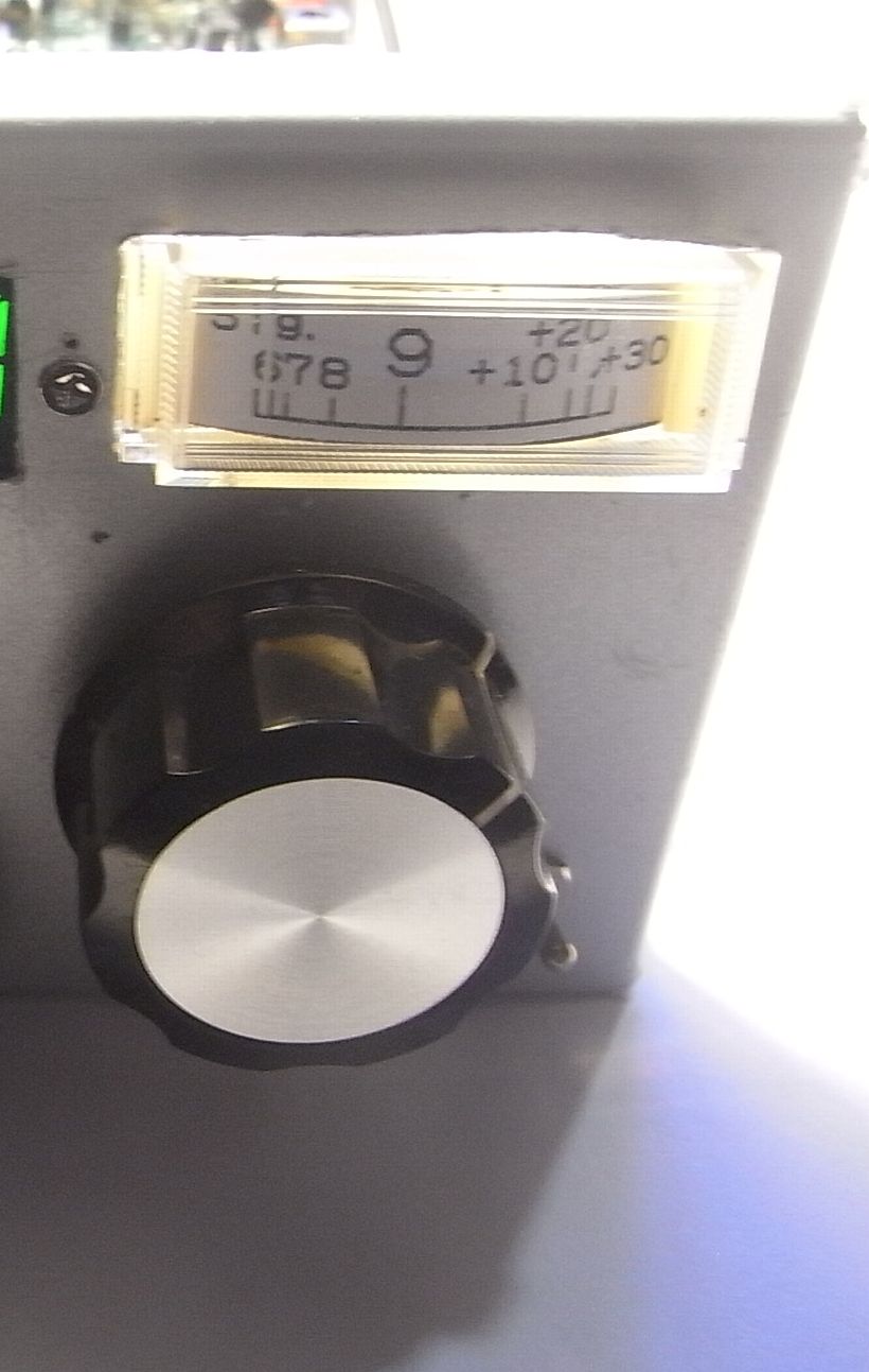 SGより信号を入れて、メータのS目盛りを校正したところ、下図のとおりで、S5以下ではメータは振れず、約40%電流で S9となり、S9+10dBとの間に大きく間の空いたような目盛りとなりました。 通常の市販リグの目盛りとは大きく異なるようです。