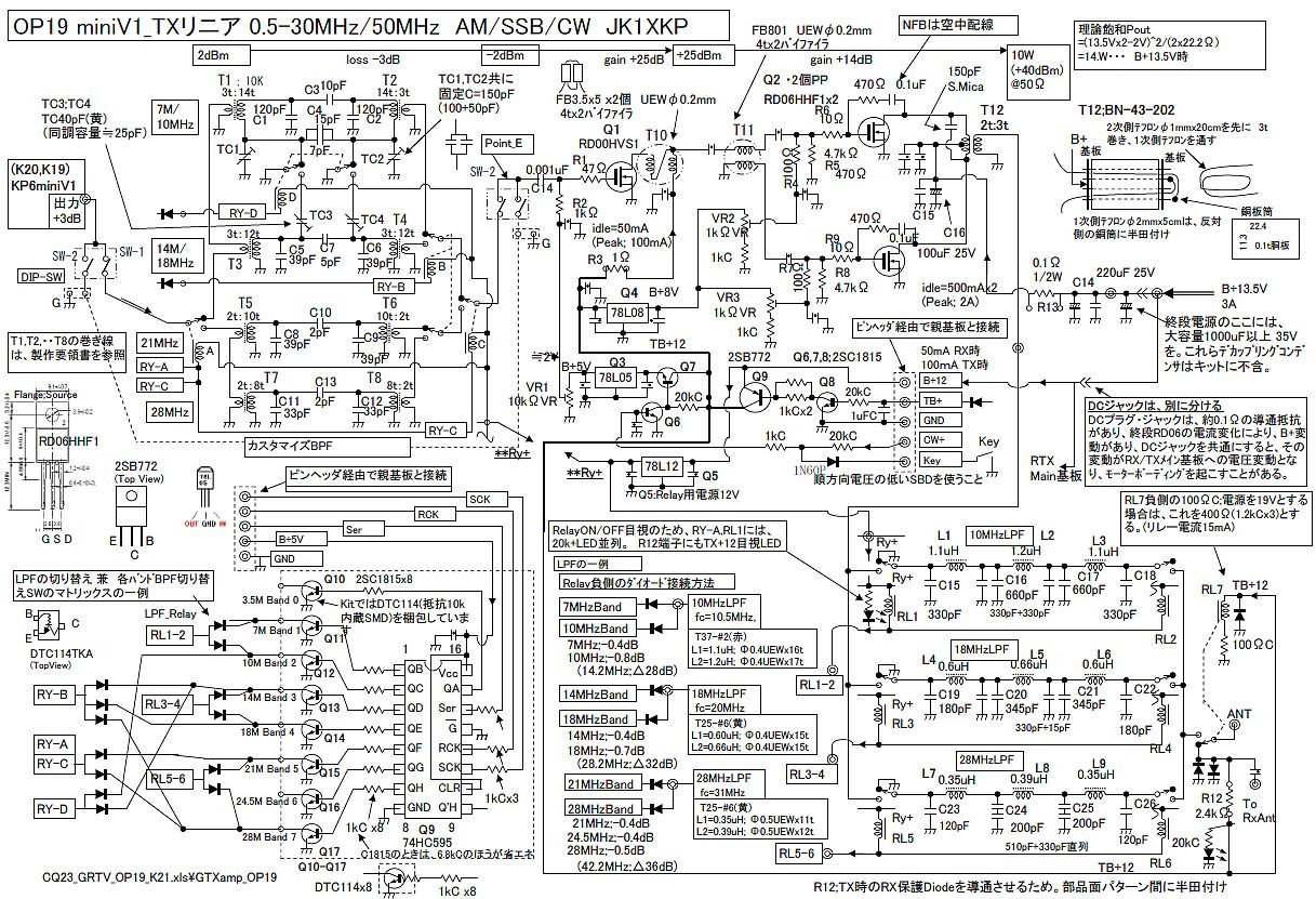 (K20)、(K21)KP6miniジェネカバTRXの +3dBm(2mW)を10Wに増幅するために、RD00HVS1+RD06HHF1プッシュプルアンプを製作した。