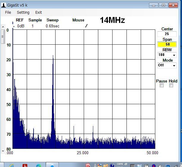 各バンドの出力スペクトラムは、下図のとおり。 65〜60dBATTを入れて、GigaST5で観察。