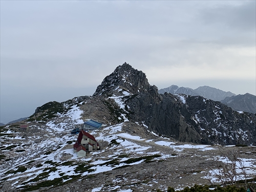 乗越浄土から宝剣山荘の脇を通って宝剣沢上部へ、先に逝ってしまったRAさんに暫し瞑目。