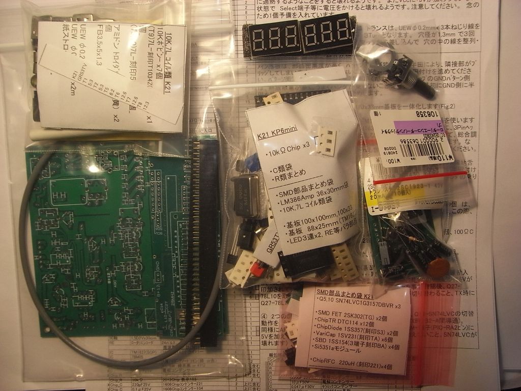 0.5MHz〜30MHz+50MHz の SSB/CW/AM ゼネカバ受信機基板と部品です。2mWの微小電力ですが、TX部もあり、SSB/CW/AMトランシーバーを構成しています。