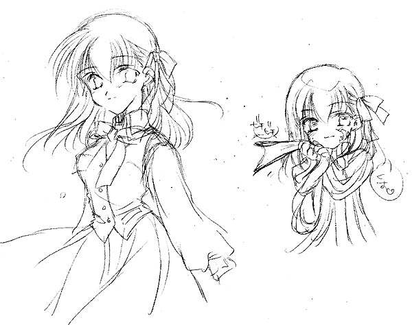 ちびバージョンをかこうとして失敗した凛。中途半端にミニ。んで、ドレスセイバーこれもややミニっぽい