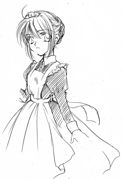 メイドセイバー。こっちもシンプルに。胸にリボンありなしで悩む所。