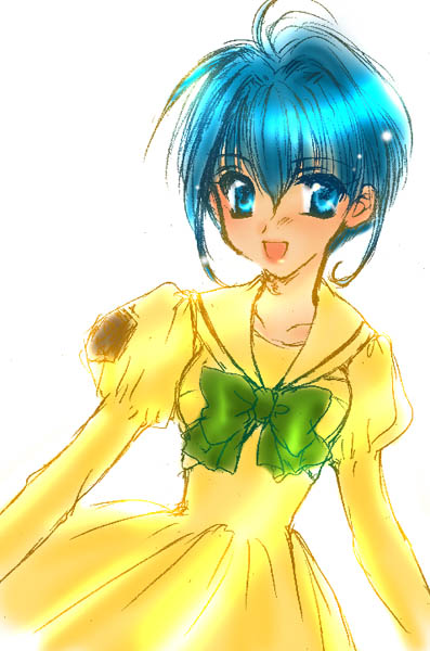 | いのりを描いたら、なんとなく「ギャルゲのメインヒロインぽいなぁ」と思ったので それじゃぁってことで、描いたのがこのこです。 メインヒロインの親友、ボーイッシュなかんじで。 背が高くって、さばさばしてるので、本人はそんな自分をちょっと気にしていたり。 だからほんわりしてるいのりみたいなタイプがうらやましかったり(w でも、彼女とはすごく仲がいいです。 |