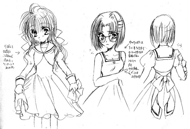 | 左は、胸のリボンを外したところです。真中は、そこからさらに上着(ジャケット?)を脱いだところ。中に、ワンピースを着ています。 ちなみに、右腕にだけ校章の刺繍ワッペンがついてます。ワンピの胸元にも小さくワンポイントあります。 右は、後姿腰のリボンでウエストのサイズを調整できます。 スカートの丈は標準はひざ下丈ですが、長さは基本的に自由です。靴下も一応指定はありますが、派手じゃなければ大概はOK。 襟には襟章(背章?)がついてます。>多分 |