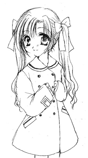 | 女子の冬のコートです。スカートの形を綺麗にみせるため Aラインになってます。色は、普段の制服より少し濃い色です (山吹色っぽいかな?) |