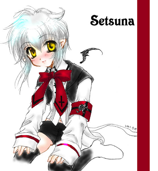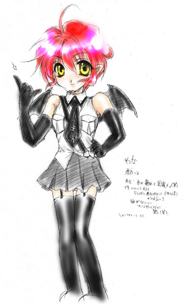 | 2003年9月19日 決定稿 すでに、最初とほとんど別人。銀髪でショートはかなり好き。 服はあえてボーイッシュ。黒と赤と白で統一。 |